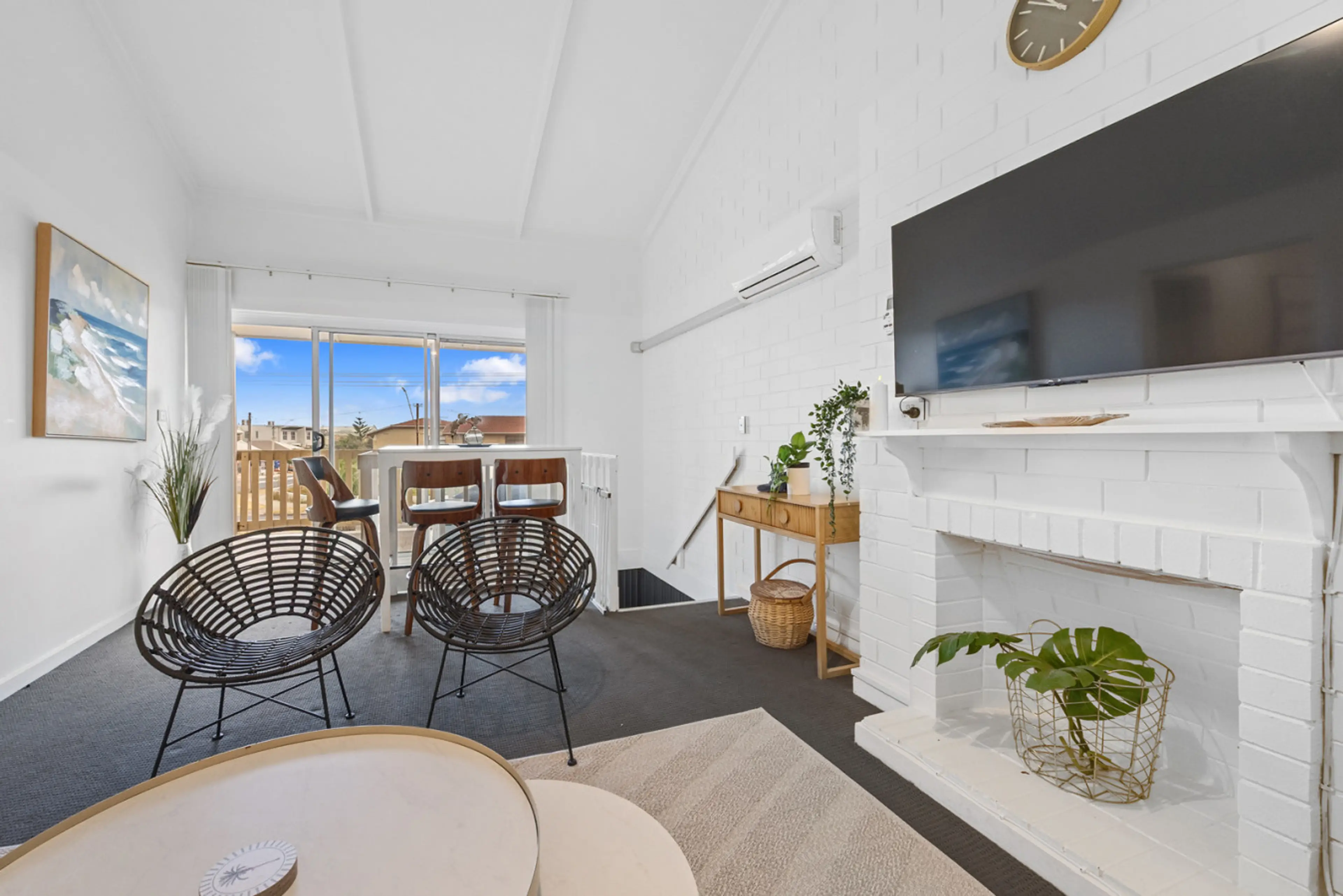 Experience the serene bliss of ocean views from the comfort of a private balcony in this stylish, two-bedroom, one-bathroom property. Nestled just a leisurely five-minute stroll from the golden sands of the beach, this home boasts modern comforts and seamless living with an inconspicuously integrate...
